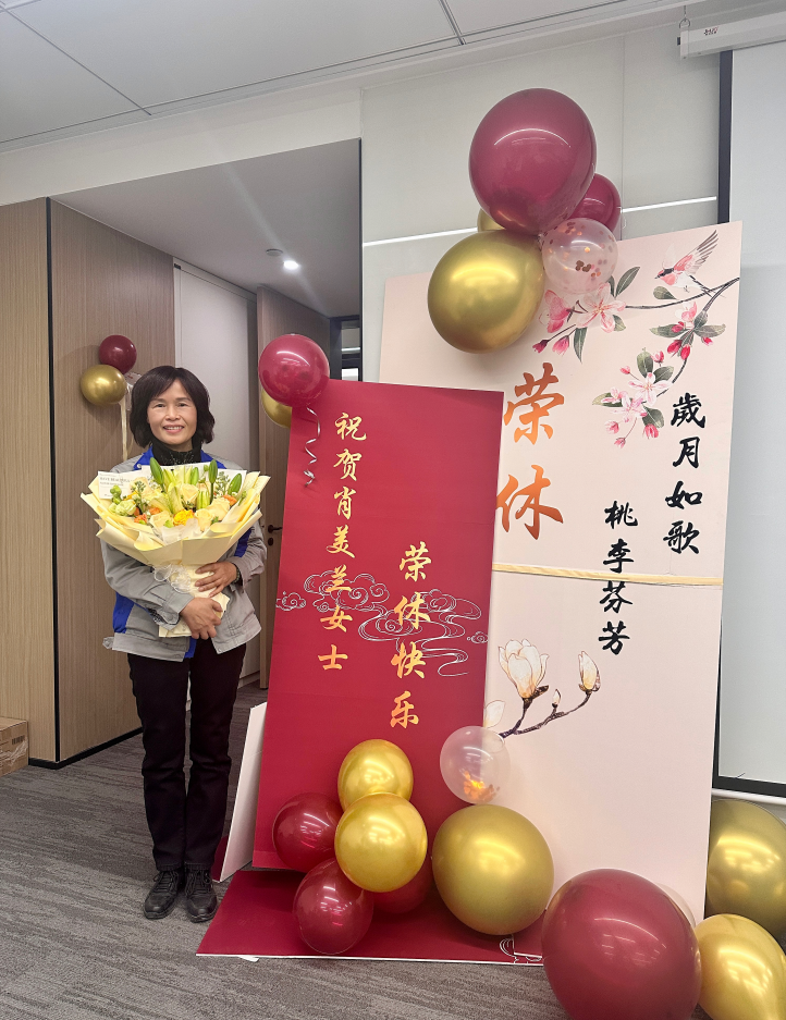 歡送會的現場布置得格外溫馨,彩色的氣球、大大的“榮休快樂”,讓整個會場都洋溢着喜慶的氛圍。當肖總走進會場時,掌聲雷動,熱烈的掌聲裏滿是大家對她的敬意和不舍。
